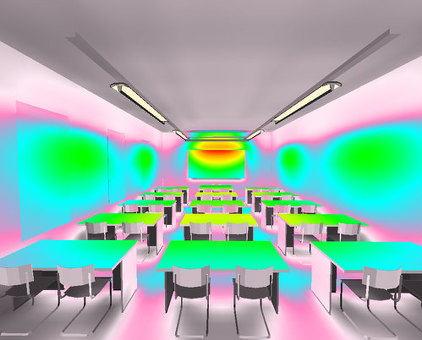直射和間接光:理想的照明考慮了向天花板發射並由天花板反射的光的分數。如果避免使用黑暗的天花板,陰影中會投射較少的區域,學生將更容易識別黑板上的面部或標記。